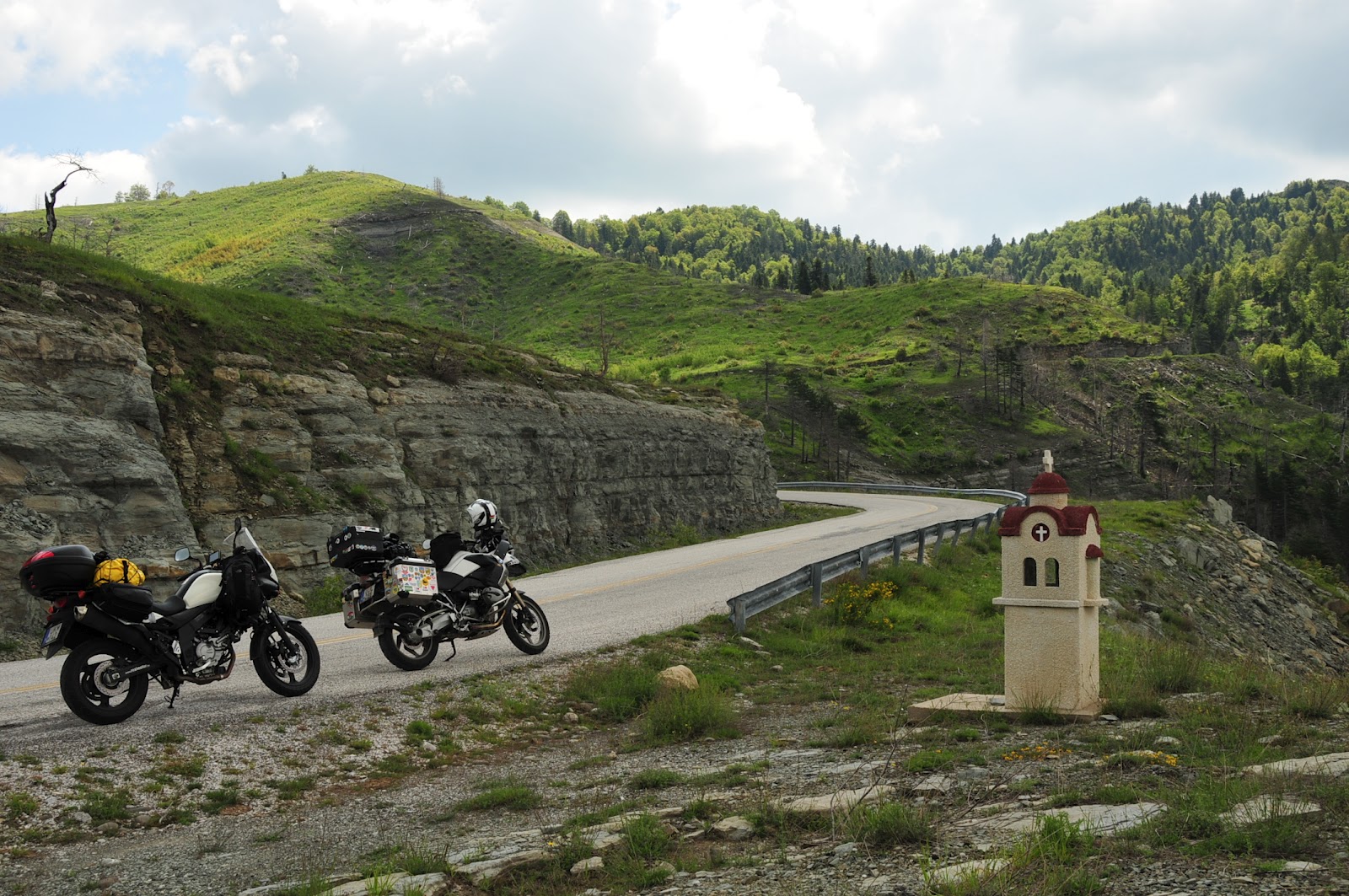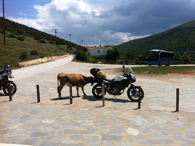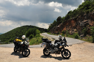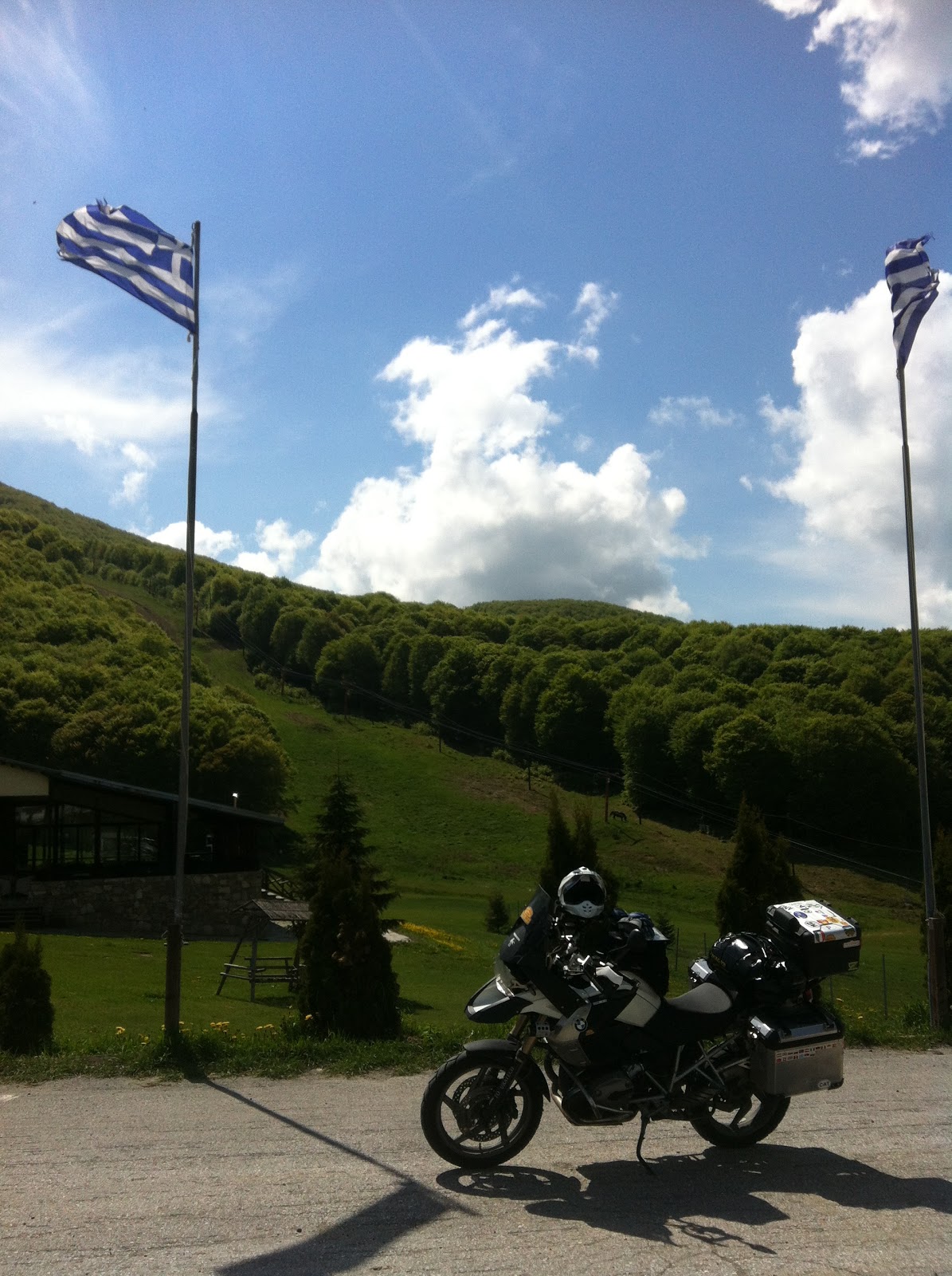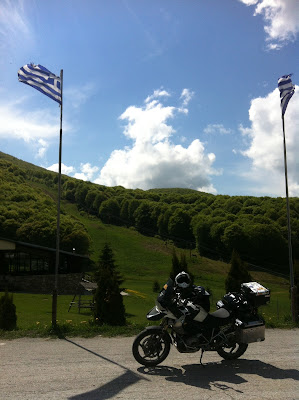 We saddled up and headed for Florina and then north to the Macedonian border. We stopped briefly at the top of the mountain as I put on my icebreaker as the air was getting very cool at 1500m.