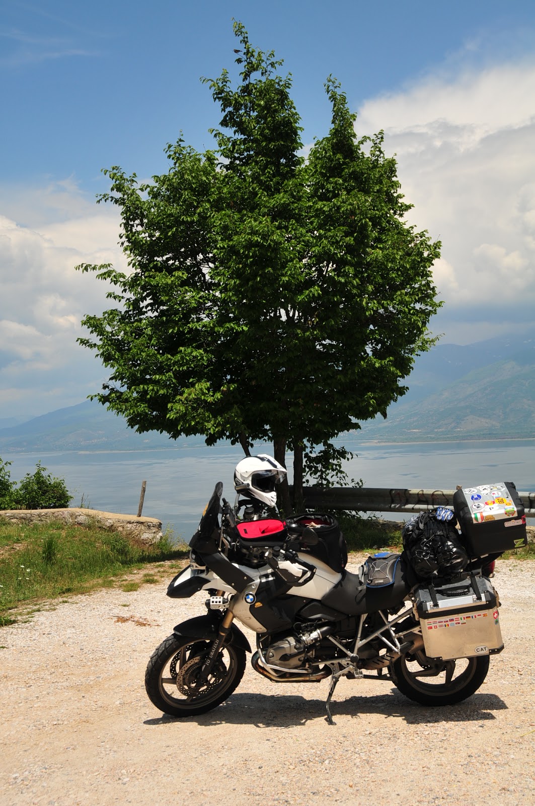 We crossed the border without any hassle although the customs officer warned us that roads are ‘catastrophic’ for the first 15 km. He was right. There are holes that would easily swallow a car so we had to be careful. Once in Bitola we thought we were okay but then the Garmin played a trick. I was already suspicious when we just kept on going in really small streets but at one point we found ourselves above the city completely off road. When making a u-turn I slipped and fell off the bike. Once we pulled it back upright we laughed so hard we almost cried. So we tracked back our steps and followed the roadsigns until we arrived on the national road.